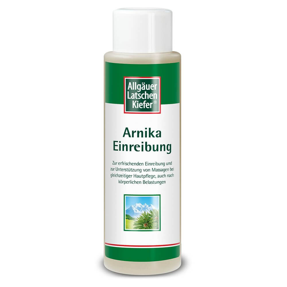 Allgäuer Latschenkiefer Arnika Einreibung mit Arnikaextrakt und natürlichen Ölen wie Salbei- und Rosmarinöl und das Original Allgäuer Latschenkieferöl.