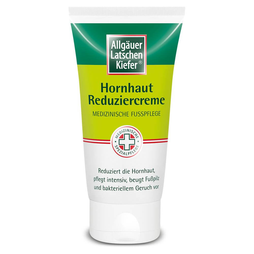 Die Allgäuer Latschenkiefer Hornhaut Reduziercreme mit der innovativen Anti-Hornhaut-Formel wurde speziell von Fußpflege-Experten entwickelt. Die pflegende Wirkstoffkombination mit Fruchtsäuren und Original Allgäuer Latschenkiefernöl reduziert die Hornhaut innerhalb weniger Tage. Pflegende Inhaltsstoffe wie Shea Butter und Panthenol sorgen für eine spürbar glattere und zartere Haut. Fußpilz und bakteriellem Geruch wird vorgebeugt.