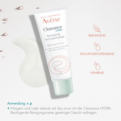 Morgens und/oder abends auf das zuvor mit der Cleanance HYDRA Beruhigende Reinigungscreme gereinigte Gesicht auftragen.
