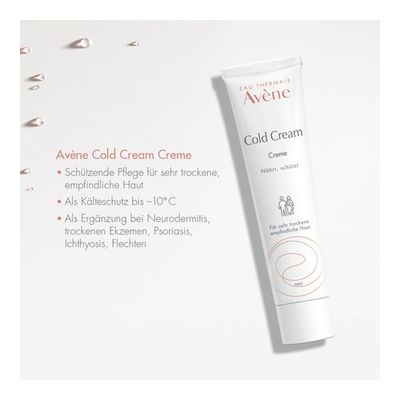 Die Avène Cold Cream Creme schützt die Haut durch den hohen Anteil an weißem Bienenwachs vor dem Austrocknen und macht die Haut wieder weich und geschmeidig. Die leicht duftende Textur wirkt rückfettend und bildet einen Kälteschutz bis zu -10° C (z.B bei Couperose-/Rosacea-Patienten). Die Creme kann auch als Ergänzung bei Neurodermitis, trockenen Ekzemen, Psoriasis, Ichthyosis, Flechten verwendet werden.