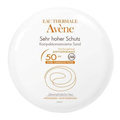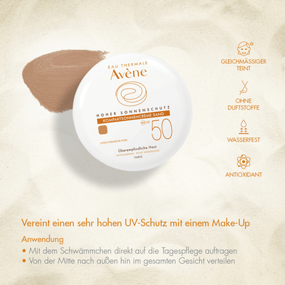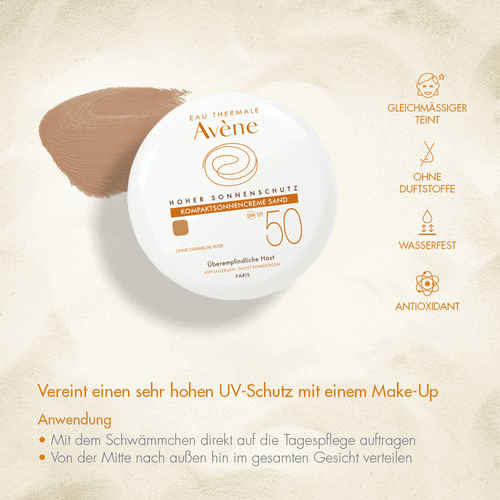 Sonnenschutz und Make-up in einem: Die Kompaktsonnencreme deckt unregelmäßige Pigmentierungen und Hautunregelmäßigkeiten zuverlässig ab. Geschminkt und geschützt.