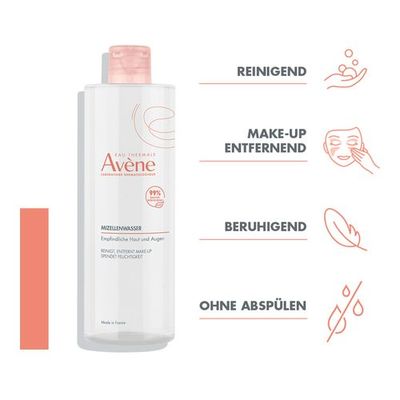 Diese Mizellen-Reinigungslotion reinigt, spendet Feuchtigkeit und beruhigt empfindliche Gesichts- und Augenpartien in einem einfachen Schritt. Täglich entfernt dieses zart duftende Erfrischungswasser Make-up und schenkt Geschmeidigkeit in einem einfachen und schnellen Schritt. Es verbessert die Feuchtigkeitszufuhr und bewahrt das natürliche Gleichgewicht der Haut dank der Kombination von Glycerin und Trehalose und der hohen Konzentration des Avène Thermalwassers mit seinen beruhigenden Eigenschaften.