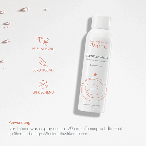 Das Thermalwasserspray aus ca. 20 cm Entfernung auf die Haut sprühen und einige Minuten einwirken lassen.
