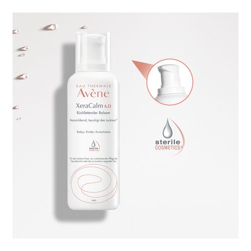 Der Avène XeraCalm A.D Balsam zeichnet sich durch seinen sterilen Pumpspender aus, der eine einfache Dosierung und hygienische Entnahme ermöglicht und für eine hohe Verträglichkeit sorgt. Die hochverträgliche Gesichts- und Körperpflege ist bereits für Babys ab 1 Monat geeignet. Der Balsam wird steril hergestellt sowie abgefüllt und ist ohne Duft- und Konservierungsstoffe. Besonders ist der Balsam bei sehr trockener Haut, atopischen Hautzuständen, zu Neurodermitis neigender Haut oder Altersxerose geeignet.