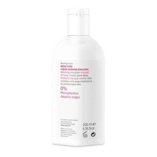 Waschlotion statt Seife. Schont den Säureschutzmantel. Auch bei Seifenunverträglichkeit oder problematischer Haut. Mit frischem Duft. Reinigt porentief und schützt die natürliche Biosphäre der Haut
