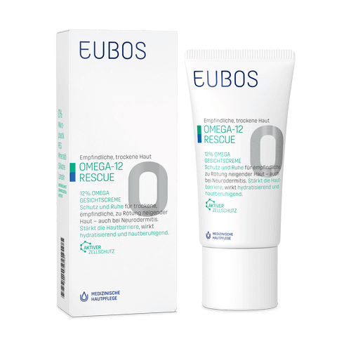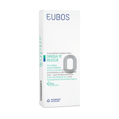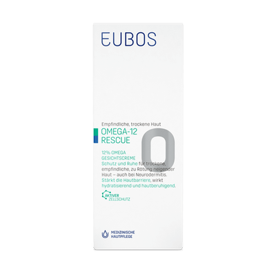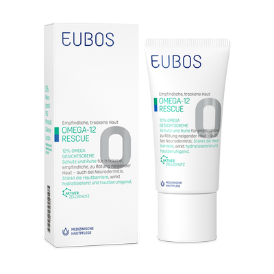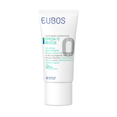 EUBOS OMEGA-12 RESCUE 12% GESICHTSCREME. Sehr reichhaltige, beruhigende, medizinische Hautpflege. Für trockene, empfindliche und zu Ekzemen neigende Haut