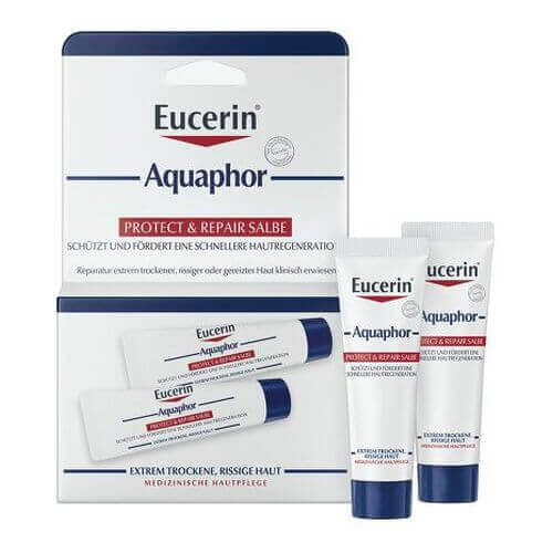 Die Eucerin Aquaphor Protect & Repair Salbe bildet einen Schutzfilm auf der Haut, der die natürliche Schutzbarriere irritierter, extrem trockener und rissiger Haut wiederherstellt.