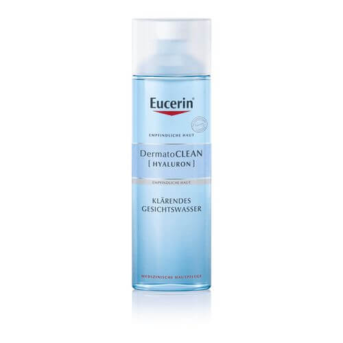 Das Eucerin DermatoCLEAN [HYALURON] Klärende Gesichtswasser entfernt alle Rückstände der vorherigen Reinigung von der Gesichtshaut. Die Haut wird somit sanft und effektiv auf die nachfolgende Pflege vorbereitet. In der Formel sind Hyaluron sowie weitere aus der Natur gewonnene feuchtigkeitsspendende Inhaltsstoffe enthalten.