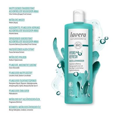 Das lavera Hydro Refresh Mizellenwasser hinterlässt ein angenehmes Feuchtigkeitsgefühl auf der Haut. Die effektive und gut verträgliche Mizellen-Technologie trocknet nicht aus, ermöglicht eine schonende, aber gründliche Reinigung und befreit die Haut sanft von Make-up, Schmutz und Talg - für eine spürbar erfrischte und gereinigte Haut.