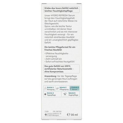 Das Hydro Refresh Serum bringt den Feuchtigkeitsgehalt der Haut auf natürliche Weise ins Gleichgewicht. Die effektive und gut verträgliche Formel füllt die Feuchtigkeitsdepots der Haut langanhaltend auf und stärkt so die Barrierefunktion der Haut. Spüre, wie die leichte Textur unseres Serums unmittelbar mit deiner Haut verschmilzt und sie mit intensiver Feuchtigkeit versorgt - für ein natürlich strahlendes Hautbild und ein unvergleichlich gepflegtes Gefühl.