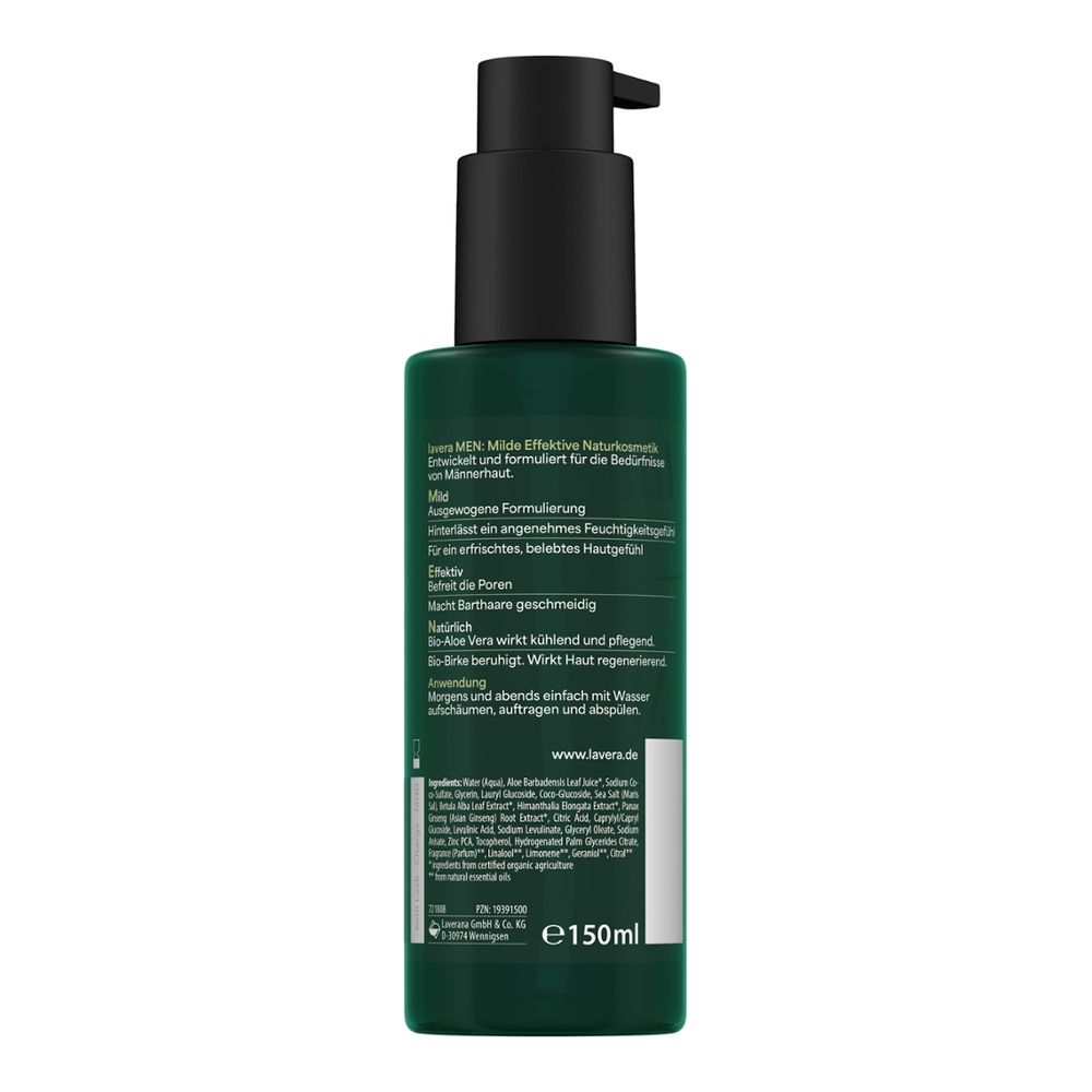 Morgens und abends einfach mit Wasser aufschäumen, auftragen und abspülen. Optimale Vorbereitung für die lavera MEN Feuchtigkeitscreme danach.