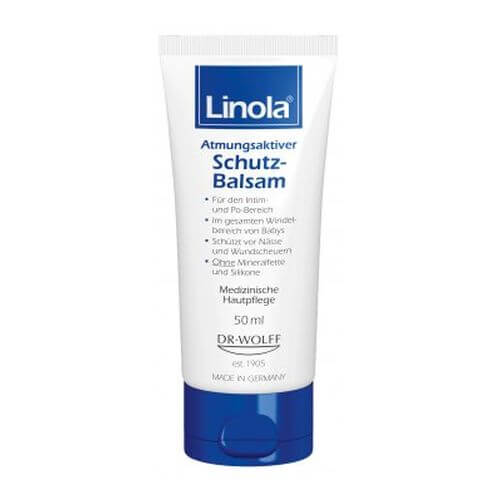 Linola Schutz-Balsam bildet einen atmungsaktiven Schutzfilm auf der Haut und schützt so vor Wundwerden durch Schweißstau, hautreizenden Urin oder Stuhl sowie durch Scheuern (z.B. Radsport, Kleidung, Slipeinlagen)