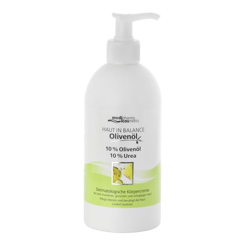 Einzigartige Wirkstoffkombination aus 10 % Olivenöl und 10 % Urea. Trockene, schuppige Haut wird intensiv mit Feuchtigkeit versorgt. Panthenol und Olivenblattextrakt pflegen nachhaltig. Die Öl-in-Wasser Körpercreme entspannt die gereizte Haut. Frei von Farbstoffen, Silikonölen, Paraffinölen, Wollwachsen und Parabenen.