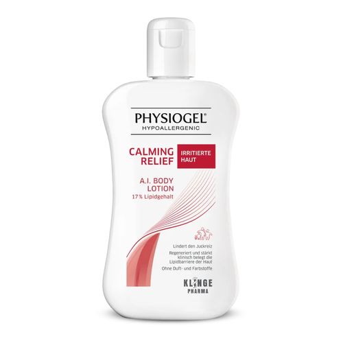 Die PHYSIOGEL® Calming Relief A.I. Body Lotion ist eine leichte Lotion, welche für irritierte oder juckende Haut entwickelt wurde. Durch einen hautberuhigenden Wirkkomplex aus hautverwandten Lipiden und Palmitoylethanolamin (PEA) lindert die PHYSIOGEL® Calming Relief A.I. Body Lotion Juckreiz und Rötungen, zudem wird die Haut natürlich und sanft gepflegt.