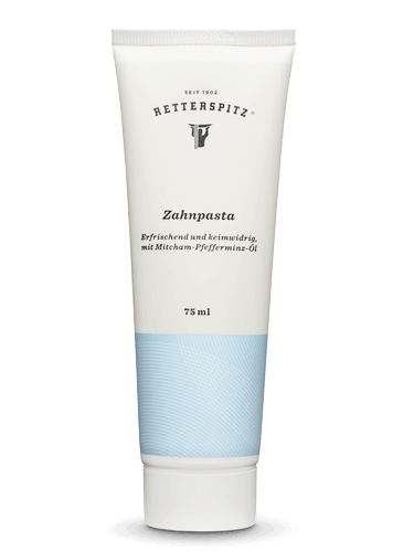Retterspitz Zahnpasta ist säuregepuffert, stärkt die Kapillardurchblutung des Zahnfleisches, festigt das Zahnfleisch und härtet empfindliche Zähne ab. Die Zahnpasta entfernt Speiserückstände und bakterienhaltige Plaques an den Zahnoberflächen. Das Pflegepräparat eignet sich ebenfalls für elektrische Zahnbürsten. Gibt sofort ein frisches Gefühl durch das ätherische Öl der Mitcham-Minze. Spülungen mit Retterspitz Mund- und Gurgelwasser morgens und abends runden das Pflegeprogramm ab. Würzige pflanzliche Extrakte, u. a. Thymian und Eukalyptus verringern die Keimbelastung im Mundbereich.