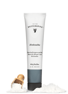 Die Wirksamkeit der Retterspitz Zinksalbe (früher: Heilsalbe ST) beruht zum größten Teil auf der antiseptischen Wirkung des Zinkoxids. Die Wirkung der Zinksalbe ist abdeckend-schützend, sie saugt auf und zieht nicht in die Haut ein. Also ideale Eigenschaften, um die Heilung vor allem bei nässenden Wunden zu unterstützen.