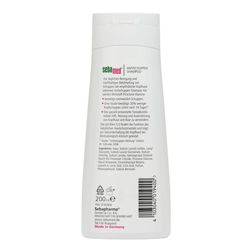 Das Sebamed Antischuppen Shampoo mit seinem Wirkstoff Piroctone Olamine beseitigt nachweislich Schuppen.