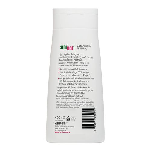 Das Sebamed Antischuppen Shampoo mit seinem Wirkstoff Piroctone Olamine beseitigt nachweislich Schuppen.