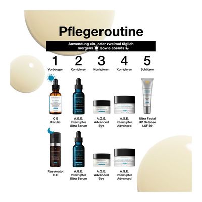 Ja, Sie können das A.G.E. Interrupter Ultra Serum mit Produkten verwenden, die Vitamin C enthalten, einschließlich C E Ferulic. Wenn Sie das A.G.E. Interrupter Ultra Serum morgens verwenden, wird empfohlen, es nach einem SkinCeuticals Vitamin C-Serum und vor dem Sonnenschutz aufzutragen.