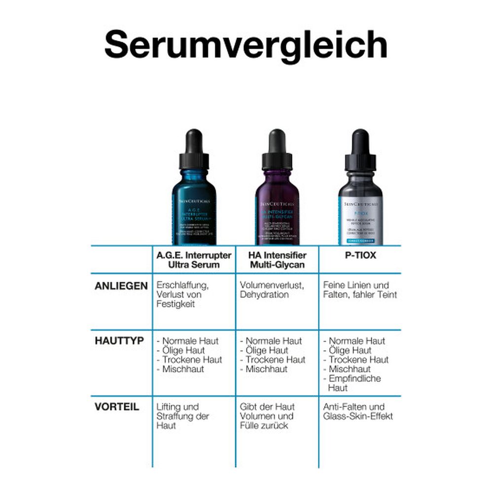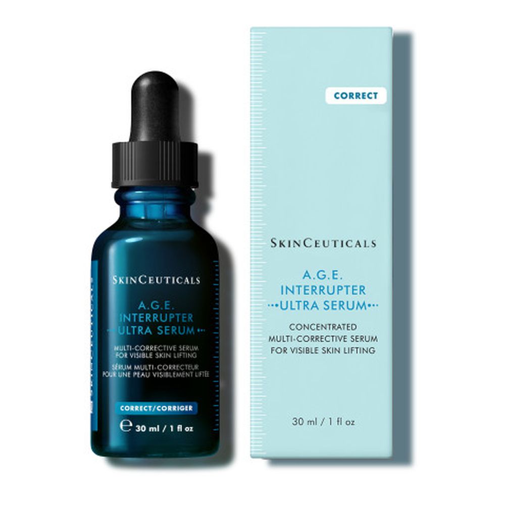 SkinCeuticals A.G.E. Interrupter Ultra Serum ist ein straffendes Anti-Aging-Serum mit Lifting-Effekt. Es enthält eine 34,6%-Flavo-Proxylane-Technologie sowie die synergetisch wirkenden Inhaltsstoffe Rhamnose und Enzian-Extrakt. Geeignet als Ergänzung zu Lifting- und Ultraschall-Behandlungen mildert das Gesichtsserum sichtbar Anzeichen der Hautalterung, die durch Glykation und den natürlichen Kollagenabbau verursacht werden. So wirkt das straffende A.G.E. Interrupter Ultra Serum effektiv Falten, Hautschlaffheit und einem fahlen Hautbild entgegen. Das Anti-Aging-Serum ist für normale, trockene, fettige und Mischhaut geeignet, spendet der Hautschutzbarriere Feuchtigkeit und stärkt sie nachhaltig.