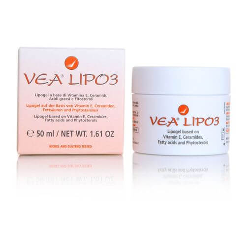 Lipogel • NICHT KOMEDOGEN Vitamin E, Ceramide, Fettsäuren und Phytosterole VEA LIPO3 ist ein Lipogel neuester Konzeption auf der Basis von Vitamin E, angereichert mit Ceramiden, Fettsäuren und Phytosterolen. Mit emollierender, feuchtigkeitsspendender, schützender und oxidationshemmender Wirkung. Hilft, die Lipidbarriere der Haut zu erhalten und zu verbessern. Enthält kein Wasser. Ohne Duft-, Farb- und Konservierungsstoffe, um Allergierisiken zu minimieren.