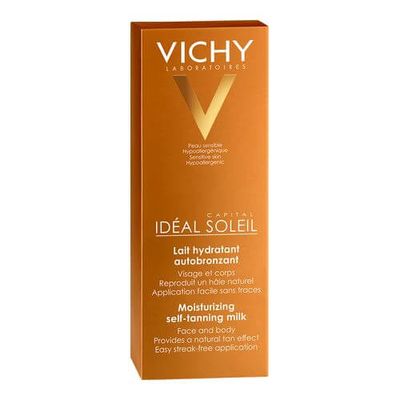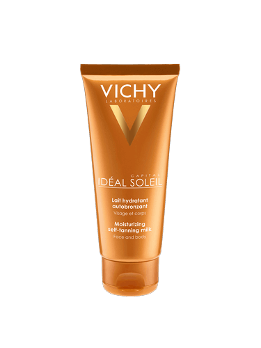 Vichy IDEAL SOLEIL Selbstbräuner-Milch Feuchtigkeitsspendend für Gesicht und Körper. Schon nach 1 Stunde erhält man eine einheitliche Bräune, die Haut wird 8 Stunden lang mit Feuchtigkeit versorgt.