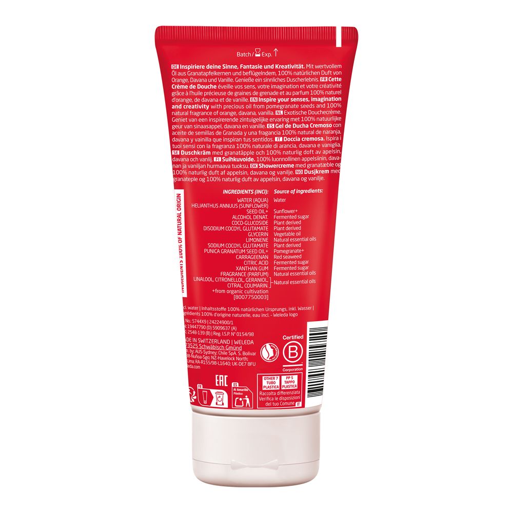 Gönn dir einen Hauch Luxus und tauche ein in ein Duscherlebnis, das Körper und Geist verführt: Das Weleda Duschgel Inspire Shower Cream Granatapfel mit kostbarem Granatapfelsamenöl und dem 100 % natürlichen Duft von Orange, Davana und Vanille wirkt wie ein Kurzurlaub für deine Sinne. Der warme, fruchtig-süße Duft weckt die Fantasie, inspiriert deine Kreativität und schenkt dir ein tiefes Gefühl von Geborgenheit und innerer Harmonie. Ob am Morgen für einen charmanten Start in den Tag oder als sinnliches Abendritual – dieser Duft berührt.