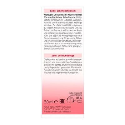 Mildert Reizungen. Der milde Balsam unterstützt die Gesunderhaltung und Regeneration des gesamten sensiblem Mundraumes und kräftigt empfindliches Zahnfleisch.