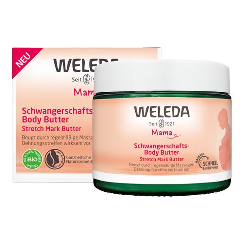 Die Weleda Schwangerschafts-Body Butter verbessert durch regelmäßige Massagen die Elastizität der Haut auf natürliche Weise und beugt somit dem Entstehen von Dehnungsstreifen vor. Dank der schnell einziehenden Formel erhält Ihr Babybauch die nötige Pflege – auch wenn Sie nur wenig Zeit für die Massage haben. Die Body Butter wurde in Zusammenarbeit mit Apothekern und Hebammen entwickelt und enthält Tigergrasextrakt, Bio-Sheabutter, reichhaltige Bio-Kakaobutter und wertvolle Öle. Der dezent feinblumige Duft nach Rose, Neroli und Myrrhe ist frisch und zart zugleich. Er hüllt wohlig ein und stimmt gelassen. Bauen Sie über die Massage eine Bindung zu Ihrem Baby auf – mit unserer nährenden Pflegeformel aus Inhaltsstoffen 100 % natürlichen Ursprungs.