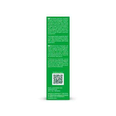 Die mikrobiomfreundliche Formel kombiniert die Skin Food Phyto-Infusion aus 100 % natürlichen Pflanzenextrakten von Rosmarin, Calendula, Kamille und Stiefmütterchen mit Koffein und Hyaluronsäure. So werden Augenringe gemindert, Schwellungen reduziert und die Haut sofort frischer, wacher und lebendiger.