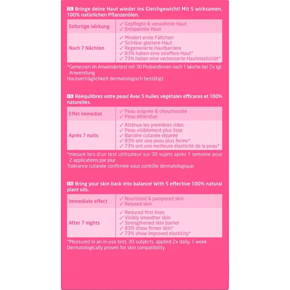 • Mit 5 wirksamen, 100% natürlichen Pflanzenölen für eine sichtbar glattere Haut
